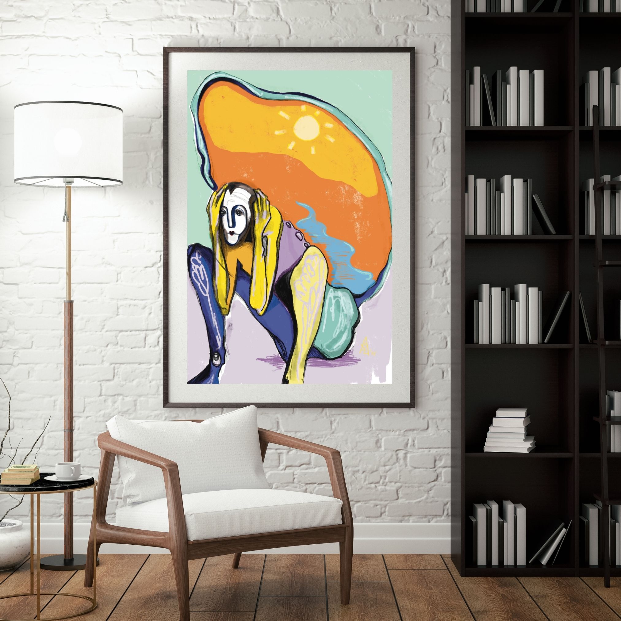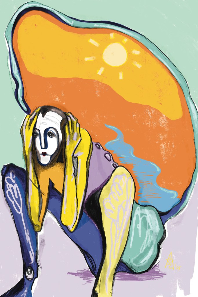 Her work spans painting, charcoal drawing, and digital media, often orbiting themes of the self and the unseen. Symbolic figures, surreal forms, and dreamlike compositions recur throughout her visual language — each piece an inquiry into the in-between: the space between thought and presence.